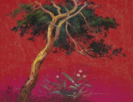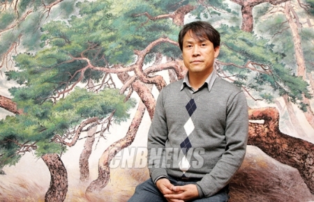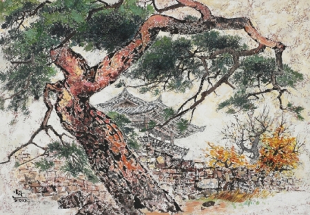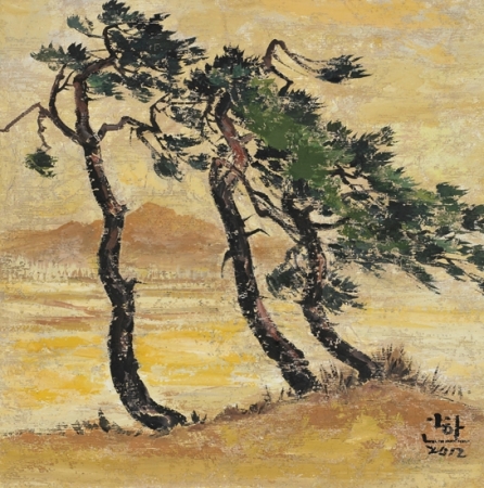 20년 넘게 소나무만 그려온 그는 자연스레 ‘소나무 작가’라 불리게 됐다. 소나무를 그리기 위해 제주도를 제외한 전국팔도를 다 누비고 다녔을 정도다. 직접 스케치해 오거나 사진으로 촬영해 온 소나무의 모습을 그린다. 이처럼 일반적으로 현실에 있는 풍경 속 소나무를 그리지만 여기서 끝나지 않고 자신이 만든 기법으로 자신만의 소나무를 그려낸다. 여기에 소나무를 마치 사람에 비유해 사랑을 넣은 독특한 발상으로 표현하기도 했다. 이 소나무는 세상 어딘가에 있을 듯 없을 듯 우리의 상상을 자극한다. “국내에는 경남과 경북에 소나무가 제일 많아요. 제주도 빼고 전국을 다 돌아봤죠. 계절별로도 다녀요. 가을이 스케치하기가 제일 좋고 여름이 제일 힘들어요. 소나무를 그리다보니 애착도 많아졌는데 사람의 형태로 사랑을 표현한 작품이 ‘에로틱 소나무’ 시리즈에요. 소나무 형태를 변형시켜 그린 거죠. 실제로는 없는 소나무지만 있을 법도 한 모습이죠. 소나무의 형태가 참 다양한 것을 보고 인위적이지 않은 자연의 신비스러움을 느끼기도 했어요. 실제로 가서 보지 않으면 얘기를 할 수 없어요.” 서양의 색감에 동양적 정취 어우러져 무엇보다 그의 그림이 다른 소나무 그림과 달리 살아 있고 더 친근하게 다가오는 이유는 남들과 다른 그만의 제작기법 때문이 아닐까 싶다. 그는 풍경을 주로 그리며 수묵으로 시작했지만 아크릴을 도입해 소나무를 그린다. 한국적인 소나무의 모습으로 우리 정서와 느낌이지만 재료는 서양의 아크릴을 사용하기 때문에 서양의 색감에 동양적인 정취가 잘 어우러진다. 특히 캔버스와 천을 이용해 물감을 칠한 후 문질러 크랙을 냄으로써 입체적인 요소를 추가하고, 자신만의 색과 마티에르로 전통과 현대가 공존하는 독특함을 표현한 그의 작품이 많은 사람들로부터 사랑받는 이유다.