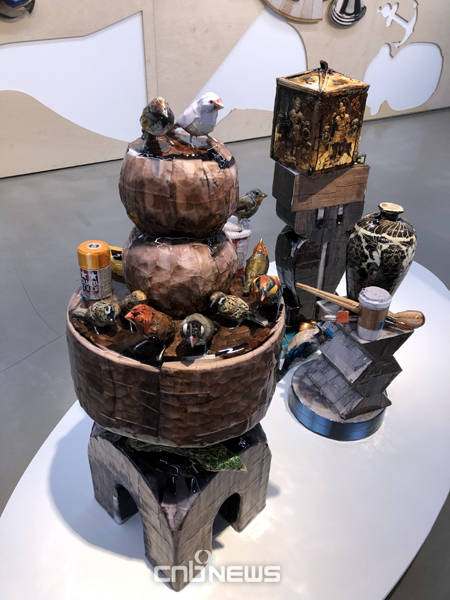 평소 흥미가 가는 것들을 모으는 습관이 있다는 그에게 세상은 수많은 오브제들로 가득 찬 창고와도 같다. 이 오브제들을 그의 방식으로 결합시켜 새로운 조각 작품으로서 생명을 부여하는 것, 그 과정을 이번 전시에서도 살필 수 있다.