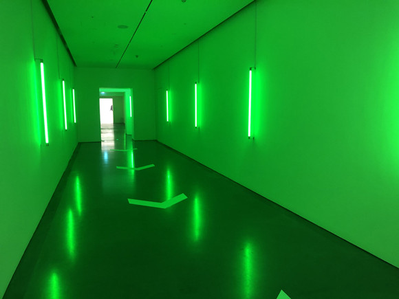 전시의 시작점인 십자 복도엔 녹색 조명이 불을 밝힌다. 이는 방송이나 영화에서 배경 합성에 사용되는 크로마키 기술을 상징화한 것으로, 전시장을 가상과 현실의 경계의 공간으로 만드는 역할을 한다. 이 복도를 지나 각 섹션에 진입할 때마다 관객은 자신이 마치 데이터의 일부처럼 ‘로딩’되는 듯한 감각을 받을 수 있다.