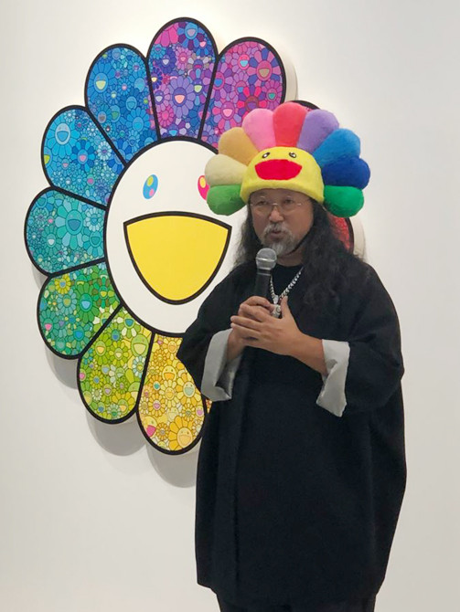 머리에 알록달록한 꽃 모양의 모자를 쓰고 나타난 작가는 그야말로 자신의 작품 속에서 바로 걸어나온 듯 했다. 주인공은 무라카미 다카시 .