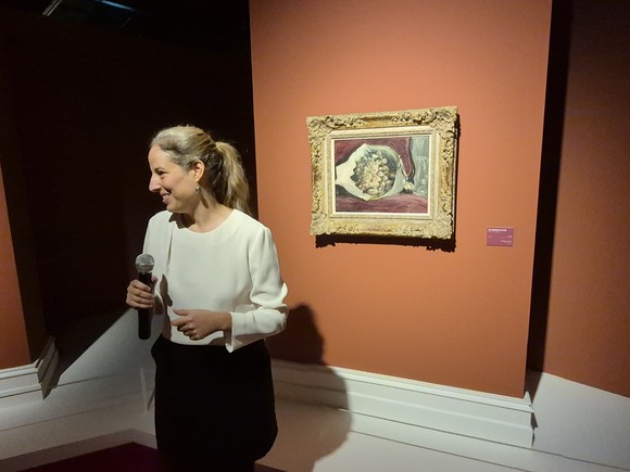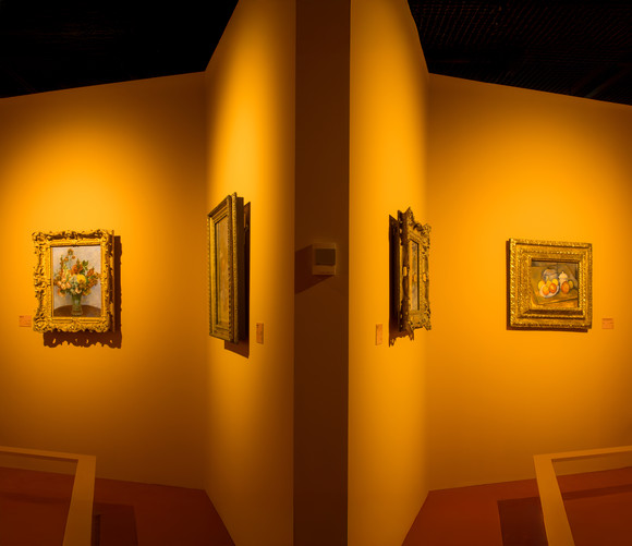 두 작가의 정물화를 모은 공간에서는 먼저 극장 좌석에 높인 꽃다발을 그린 르누와르의 작품을 만난다. 그는 전 생애동안 꽃을 표현하길 즐겨 했는데, 꽃다발이 아름답고 엘레강스한 파리의 한 여인에게 바쳐질 것이라는 상상을 불러일으킨다.