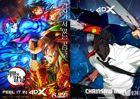 현재 상영 중인 ‘극장판 체인소 맨: 레제편’ 역시 4DX와 SCREENX 등 기술 특별관에서 흥행 열기를 이어가고 있다. 국내 4DX 일본 애니메이션 기준으로는 ‘극장판 귀멸의 칼날: 무한성편’에 이어 역대 2위, 글로벌 4DX 일본 애니메이션 기준으로는 4위에 오르며 꾸준한 인기를 이어가고 있다. 국내 4DX 평균 객석률은 51%로 일본(36%)보다 높은 수치를 기록하고 있다. 4DX의 인기에 힘입어 SCREENX 포맷으로도 추가 개봉해 관객에게 새로운 관람 경험을 제공하고 있다.