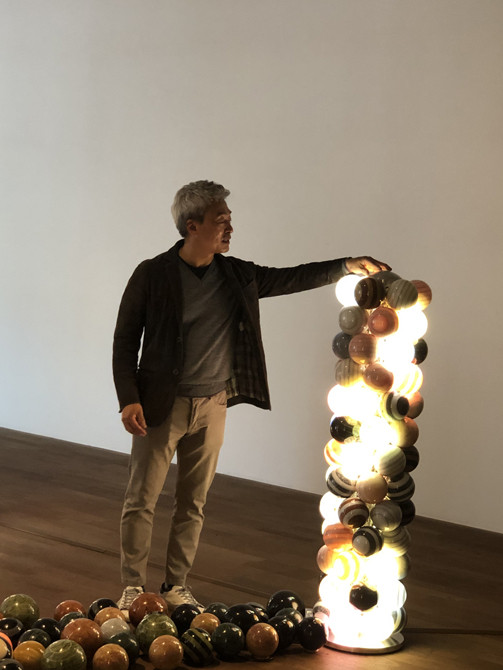 특히 작가는 이 구슬들이 흔들리다가 제자리로 돌아오는 모습에서 동질감을 느끼기도 했다고 한다. 그는 “이탈리아에서 쌀 한 톨 사지 못할 정도로 가난했던 시기가 있었다. 그런데 어느 날 작업장에 한 분이 와서 작품 한 점을 샀고, 그러니 석 달의 여유가 생겼다. 석 달 뒤 또 벼랑 끝에 섰지만, 이번엔 또 다른 분이 작품 두 점을 샀고, 6개월의 여유가 생겼다”며 “그렇게 끝날 것 같다가도 다시금 제자리로 돌아와 계단을 하나하나씩 올라갈 수 있었다. 또 그렇게 돌아올 수 있었던 건 좋아하는 걸 하기 때문이었다. 힘들었지만 불안하진 않았다”고 말했다.