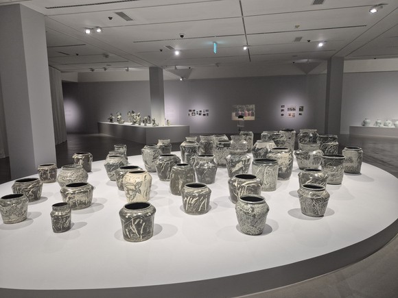 한편, 1973년 국내 첫 개인전을 계기로 선보인 〈아(我)〉 연작(1973-1980년대)은 작가로서의 초기 정체성 확립에 대한 관심을 살펴볼 수 있다. 1990년대 〈분청〉 연작(1990-1994)에서는 신상호 특유의 전통 기법과 호방한 회화적 표현이 어우러진 원숙한 도예의 경지를 감상할 수 있다. 분청은 어두운 흑색의 바탕 위에 여러 회화적 표현이 가능한 도자 양식이다. 전시장 초입에서 전통 기법으로 제작한 분청사기 청자, 백자를 만날 수있다.