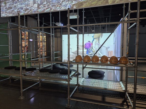 김가현 학예사는 "공간 디자인을 건축 전시라고 생각했기 때문에 건축의 기본적인 단위를 재료로 디자인을 했다. 철판이나 건축에 쓰는 파레트 공간과 벽, 좌대 등을 구성해 이번 전시의 주제에 맞도록 노력했다"라고 말했다.