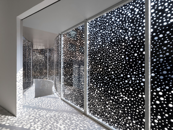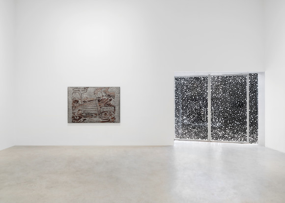 K3 전시장의 중심에는 문제의 학습 만화 속 실재하지도 않는 내해를 찾아 헤매는 유럽인 탐험가와 그를 안내하는 원주민의 관계를 당시 호주의 역사적 사실로 수용, 전습한 허구적 신화를 구체화한 대형 회화 작품 〈Untitled (LOTAWYCAS)〉가 자리한다. 그 맞은편에는 작가가 한국에서 새롭게 선보이는 설치작 〈Untitled (PCSAIMTRA)〉를 통해 자신의 작업에서 ‘점’으로 발현되어온 렌즈라는 모티브를 한 단계 더 심화, 발전시킨다. 이 작품은 총 다섯 개의 단방향 거울(one-way mirror), 즉 흔히 취조실에서 사용되는 재료로 구성되어 있는데, 한 면은 거울로, 반대쪽 면은 투명한 특수유리로 제작된다. 일방적 시선을 상징하는 이 거울은 관람객이 직접 경험하지 못한 사건을 ‘외부의 시선’에서 바라보는 순간으로 이끌며, 이로써 선택적 서사에 의해 역사가 해석 및 기록되는 방식과의 유사성을 시사한다. 작가는 관람객으로 하여금 작품과 하나 되어 개인의 단편적인 시선과 지각의 범위를 넘어 경험의 층위, 즉 '복수성(plurality)'을 확장하도록 독려한다.
