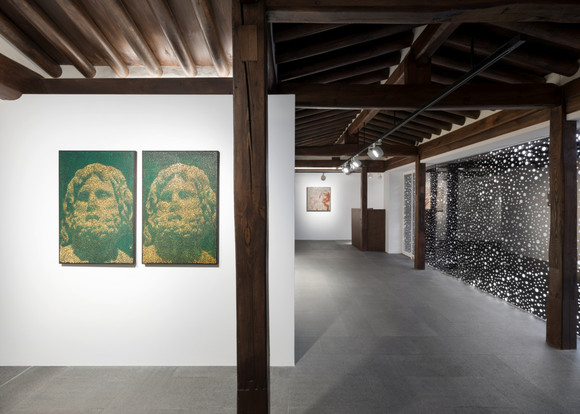 작가의 작품 표면은 수많은 점이 뒤덮고 있다. 일일이 풀로 찍어 만든 이 점들을 작가는 세상을 보는 렌즈라고 말한다. 이 점들은 역사를 대하는 다각화된 관점을 시사하기도 한다.