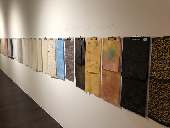 다양한 한지가 설치된 모습. 사진=김금영 기자