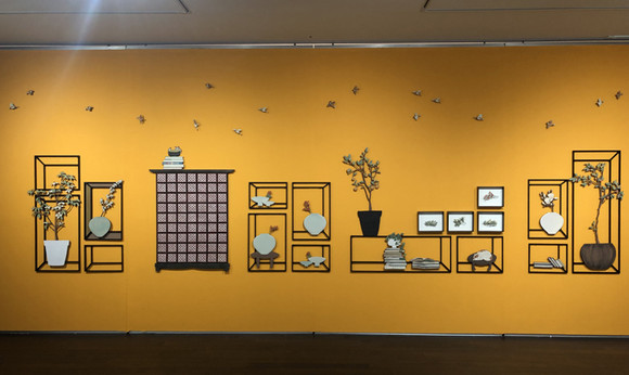또 다른 한켠엔 옛 책가도를 벽에 한가득 구현해 놓았는데, 이 또한 한지를 사용했다. 강 큐레이터는 “전 세계적으로 K팝, K푸드, K드라마 등 한국 고유의 문화에 대한 관심이 높아졌는데 이에 따라 한지에 대한 관심도 높아지고 있다”며 “박송희 작가는 한지를 활용한 작업으로 해외에서도 여러 전시를 열고 있다. 작가 또한 과거와 비교해 높아진 관심을 체감한다고 한다”고 말했다.