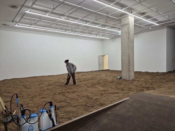 첫 번째로 등장하는 작업은 김주리 작가의 ‘물산’은 흙을 다져서 단단한 벽을 만드는 오래된 건축 방식으로 조각을 만들었다. 조각은 전시 기간에 따라 점점 허물어지면서 그 위에 새싹이 나기도 하고 다양한 모습으로 바뀌어가면서 관객을 맞이할 예정이다. 고사리 작가의 ‘초사람’은 미술관 옥상에서 제초한 풀을 말려서 만들었고, 그 풀이 다시 고사리 작가의 손을 통해 미술관에 돌아와 작품이 된 것이다.