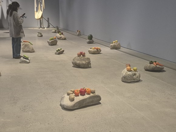 2막 ‘함께 만드는 풍경’에서는 인간이 아닌 다양한 존재들이 함께 호흡하며 만든 풍경을 보여준다. 천, 항아리, 마른 꽃, 발효액, 곤충과 곰팡이가 함께 만드는 댄 리(Dan Lie)의 작품은 미술관을 살아있는 생태계로 바꾸어 간다. 작품은 인간이 창조성을 지닌 유일무이한 존재라는 통념을 깨고 비인간 공동체를 창작의 주체로 내세운다.