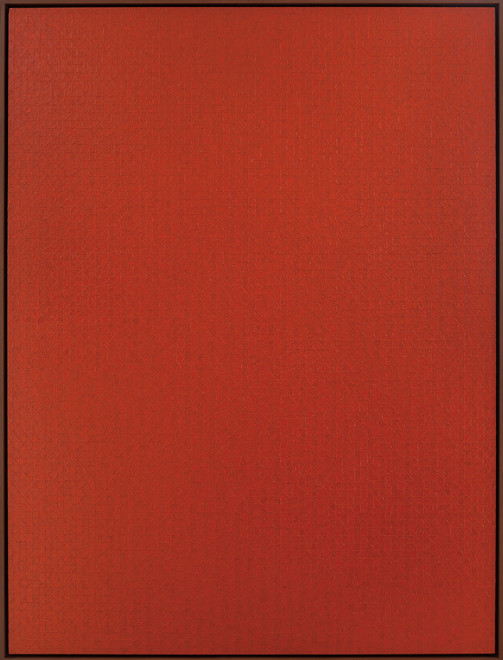 정상화의 작업은 색을 칠하는 행위에서 출발하지 않는다. 캔버스 위에 고령토를 접착제와 혼합해 바르는 단계부터 화면의 물성을 구축한다. 고령토층이 마르며 생긴 균열은 이후 격자 구조의 토대가 된다. 캔버스를 접었다 펼치는 물리적 행위를 통해 기준선이 만들어지고, 작가는 격자 단위로 고령토를 하나씩 들어낸 뒤 그 자리를 다시 물감으로 메운다.