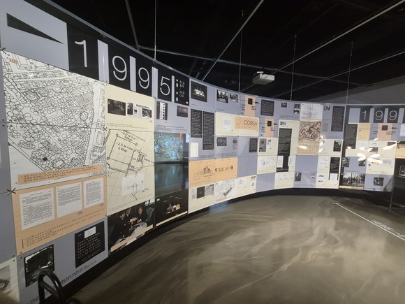 또한 노성희 작가, 백종관 작가가 한국관 아카이브를 가지고 풀어냈던 작업들을 함께 빌려와 전체 아카이브 자료를 보여주는 데 풍성하게 구성했다. 뒤쪽 영상은 2024년 10월 한국관 답사부터 시작해 2025년 한국관 설치 그리고 오프닝 행사, 연계 프로그램, 포럼 마지막 테마 프로그램까지 전체를 보여준다.