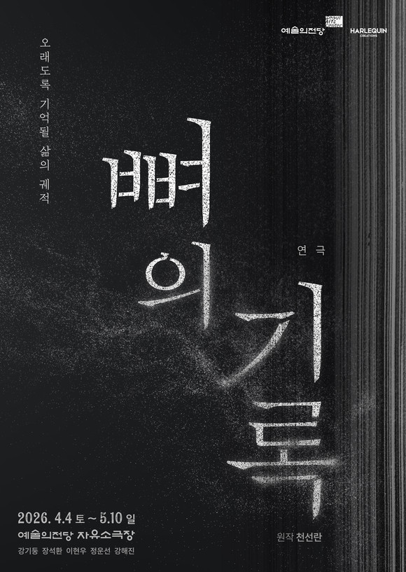 연극 〈뼈의 기록〉은 신선한 시각이 돋보이는 초연작으로, 원작의 깊이 있는 메시지를 감성적인 무대 언어로 풀어내어 웰메이드 창작극으로 완성될 예정이다. 이번 작품은 예술의전당이 지향하는 차세대 창작 인큐베이팅의 의지를 담은 공연으로, 앞으로도 참신하고 역량 있는 작품을 지속적으로 발굴해 관객과의 접점을 넓혀갈 계획이다. 특히 풍부한 제작 경험을 보유한 할리퀸크리에이션즈(주)와의 공동 기획을 통해 원작 소설을 무대 위에 새롭게 구현하는 또 하나의 의미 있는 창작 성과가 될 것으로 기대된다.