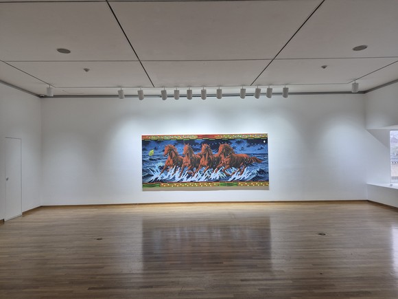 네 마리의 말이 관람객의 눈을 사로잡는 ‘가버나움으로 가는 길’은 물 위를 걷는 베드로를 말로 형상화했다. 말은 생명력과 힘을 상징하지만 죽음의 이미지도 중첩되어 있다.