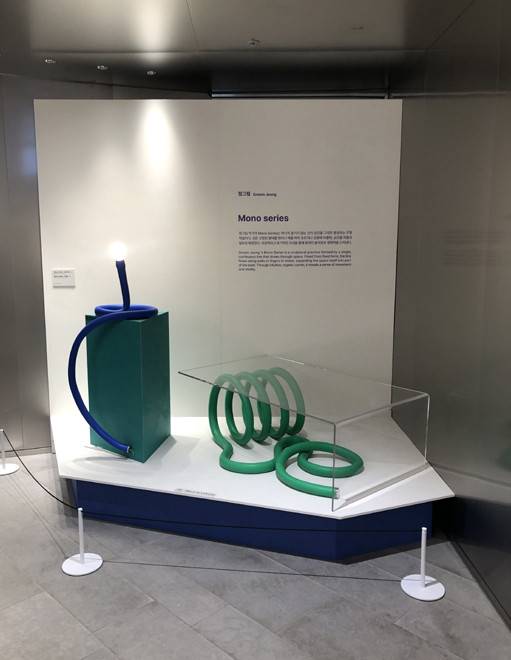 롯데백화점 본점 지하 입구에 들어서자 형형색색의 선이 꼬인 듯 독특한 형태의 작품을 바로 마주했다. 이게 끝이 아니었다. 백화점 층층을 돌아다닐 때마다 마치 보물을 발견하듯 여러 조형, 평면 작품들을 만날 수 있었다. 이 작품들의 주인공은 정그림·이건우 작가로, 올해 롯데백화점의 ‘아트 VM 프로젝트(Art Visual Merchandising Project)’의 본격 시작을 알리는 주역이기도 하다.