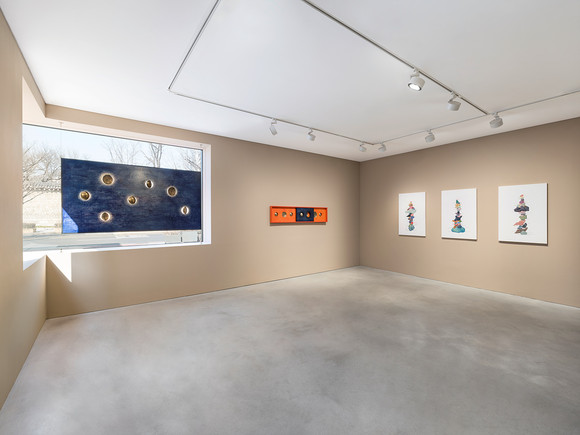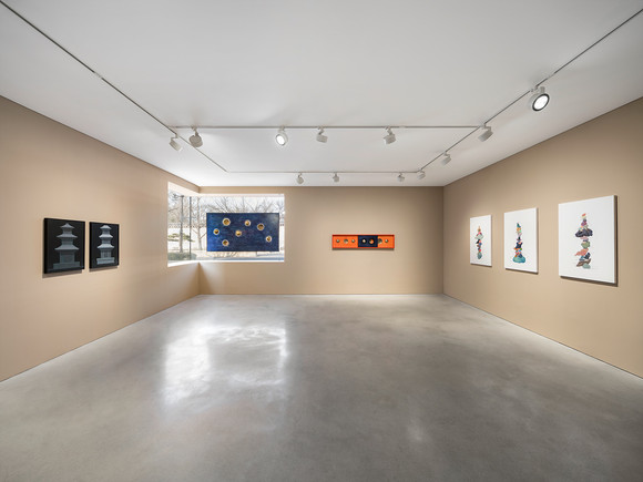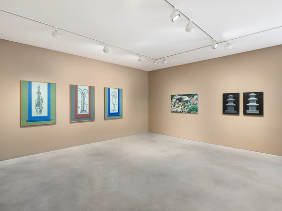 한편 〈족자〉 연작은 캔버스와 족자 사이의 언어 게임으로, 동서양의 문화적 경계에서 연행하는 외줄타기와도 같다. 〈괴석 1〉(2025), 〈괴석들〉(2025)과 〈프로젝션〉 연작은 기암괴석 그림에 배어 있는 현학(玄學, 노장사상에서 말하는 우주의 오묘한 이치)에 대해 묻는 일종의 ‘그림 퀴즈’로, 작가는 옛 괴석도가 이미 ‘인류 없는 우주’를 상상했다는 점에서 인간 중심의 사유에서 벗어나려는 작금의 노력과 맞닿아 있다고 본다.